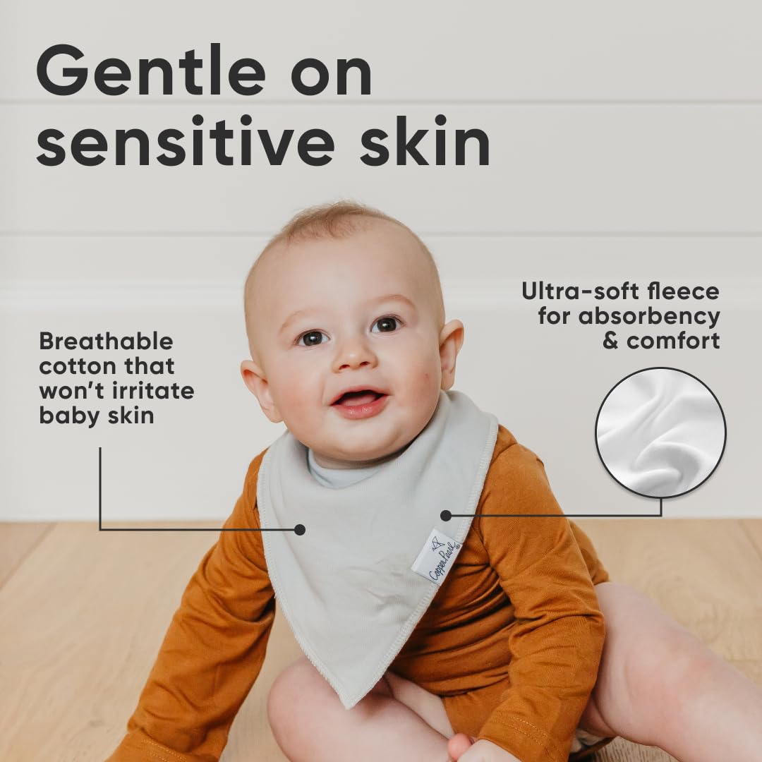 - MAXIMUM ABSORPTION: Fronted by ultra-soft Organic Cotton and lined with water-resistant polyester fleece to provide an extra layer of absorbency. Each bib is crafted with dual-layer protection against heavy drooling or spit-up, keeping your baby dry and comfortable.