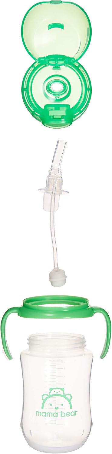 Amazon Brand - Mama Bear Silicone Weighted Straw Sippy Cup, 9 Ounces, Pack of 2, Blue/Green