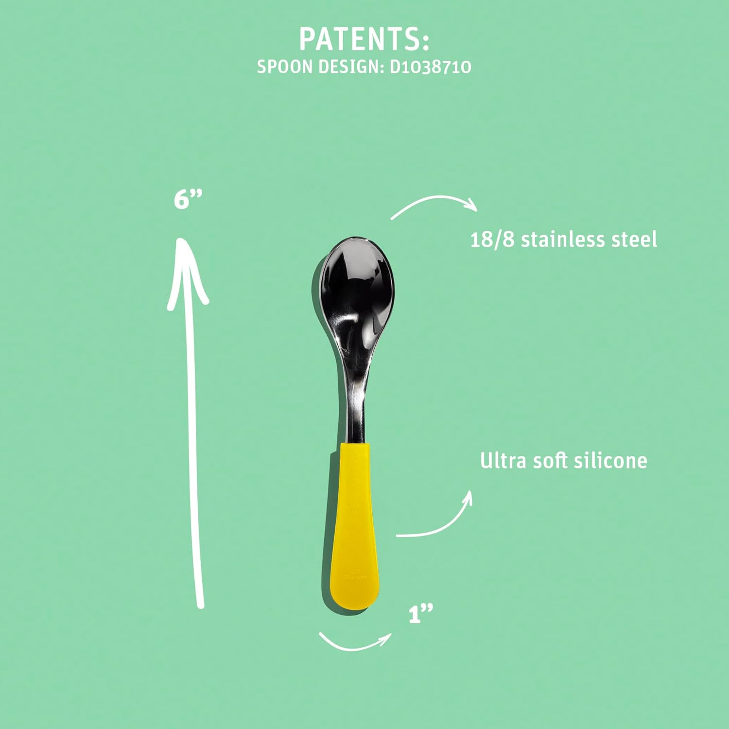 - Our spoon set is not just a feeding tool for infants, but a training companion for your bebes too! The soft silicone handles are gentle on your infant's tender hands, providing confidence.