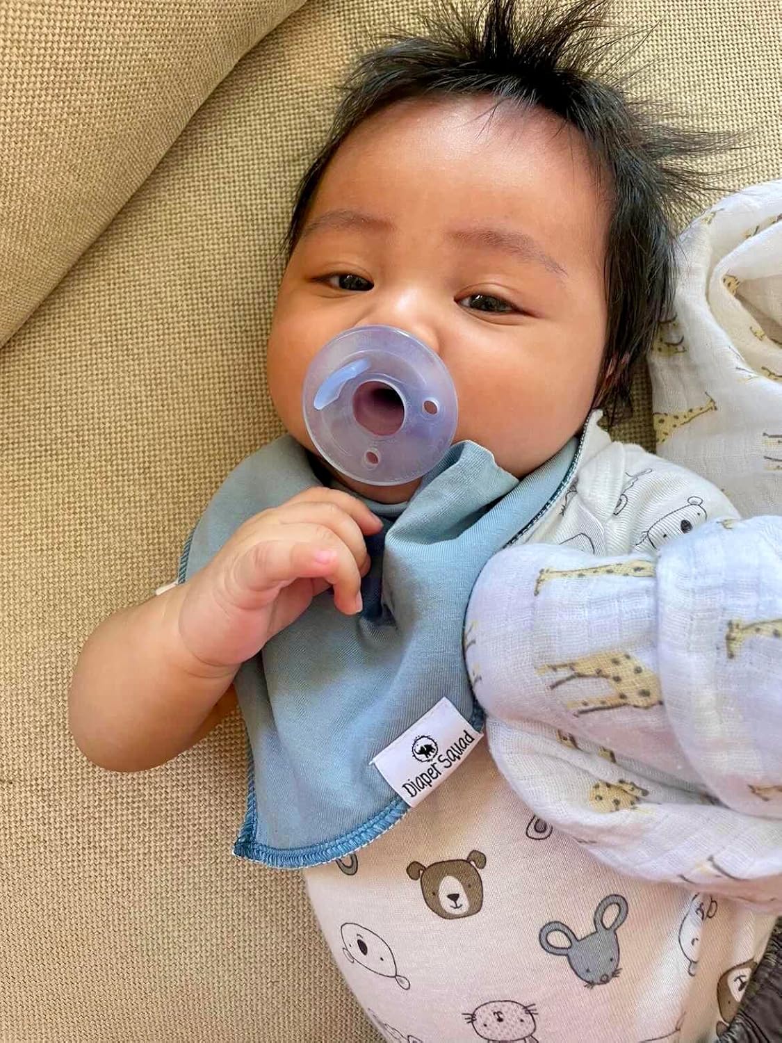 - 10-Pack Baby Bibs - Diaper Squad Bibs come in many designs, each pack offers gender neutral options to easily match your baby’s daily outfit. The soft and breathable fabric of these absorbent baby bibs ensure your little one stays cool while still catching drool while teething, they are great as baby spit up bibs, which makes them newborn essentials must haves.