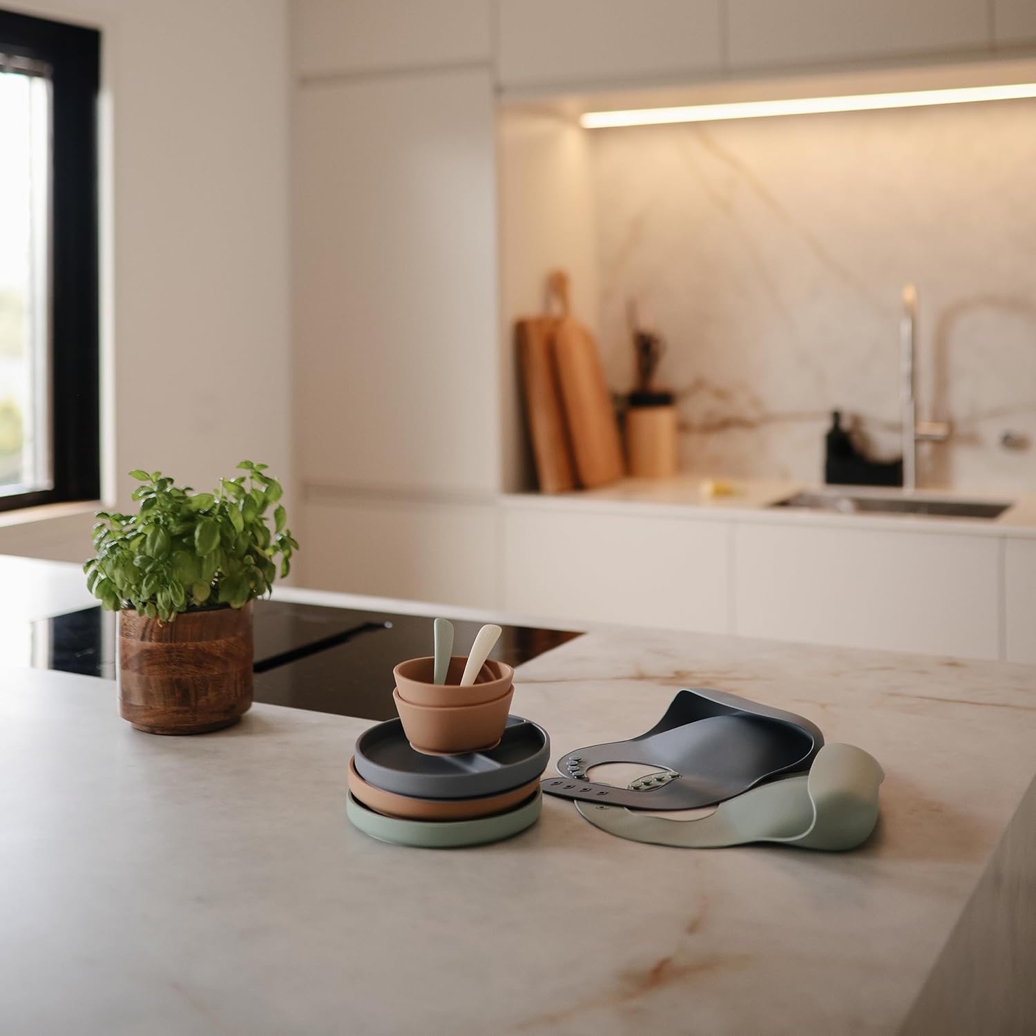 mushie Silicone Baby Bib | Adjustable Fit Waterproof Bibs (Silver Sage)