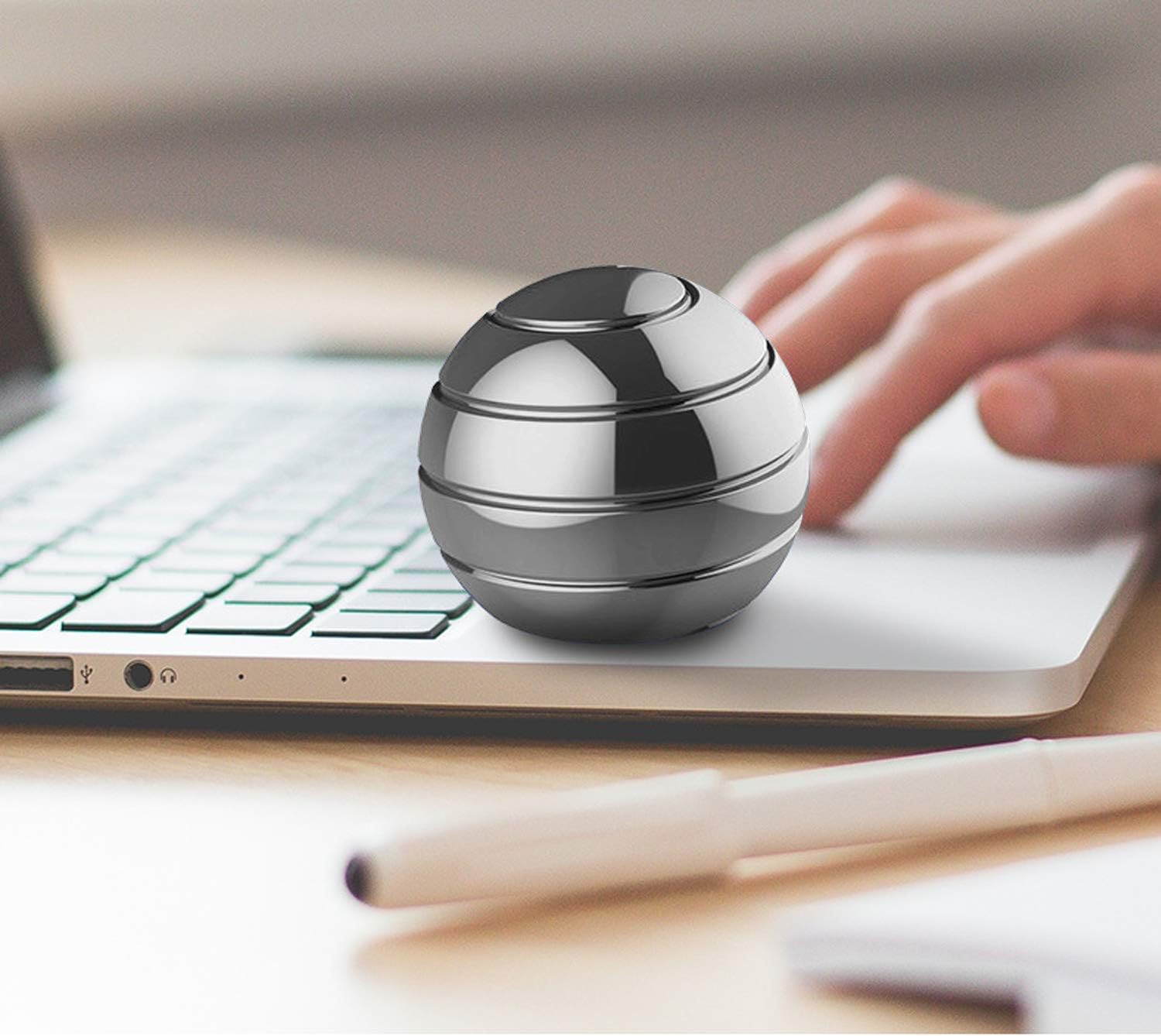 Kinetic Desk Toy,Optical Illusion Metal Fidget Spinning Ball,Office Executive Stress Relief Spinner Toys for Adults & Kids