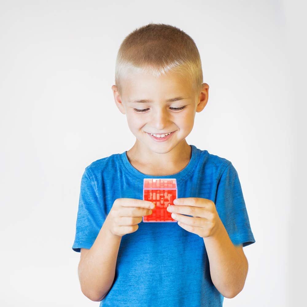 - A MAZE OF FUN: Work the little ball through the maze with smile-sparking twists and turns! This SET OF 3 includes 1 red, 1 blue, and 1 green puzzle cube that promises hours of fun. Since each maze puzzle cube measures a portable 2”, taking them on the go is a breeze.