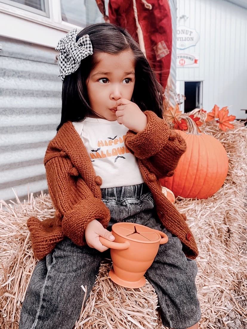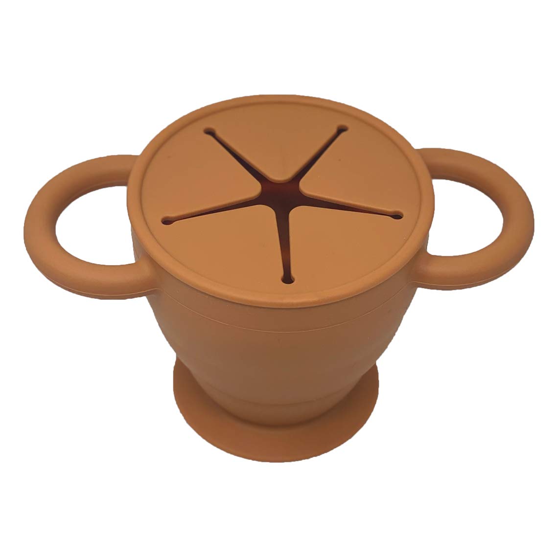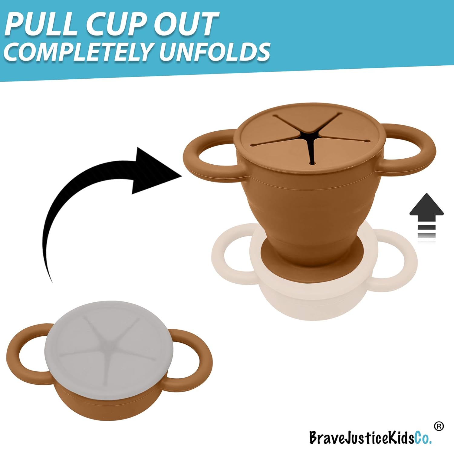 BraveJusticeKidsCo | Snack Attack II Snack Cup | Collapsible Silicone Snack Container | Toddler and Baby Snack Catcher Lid (Honey Ginger)