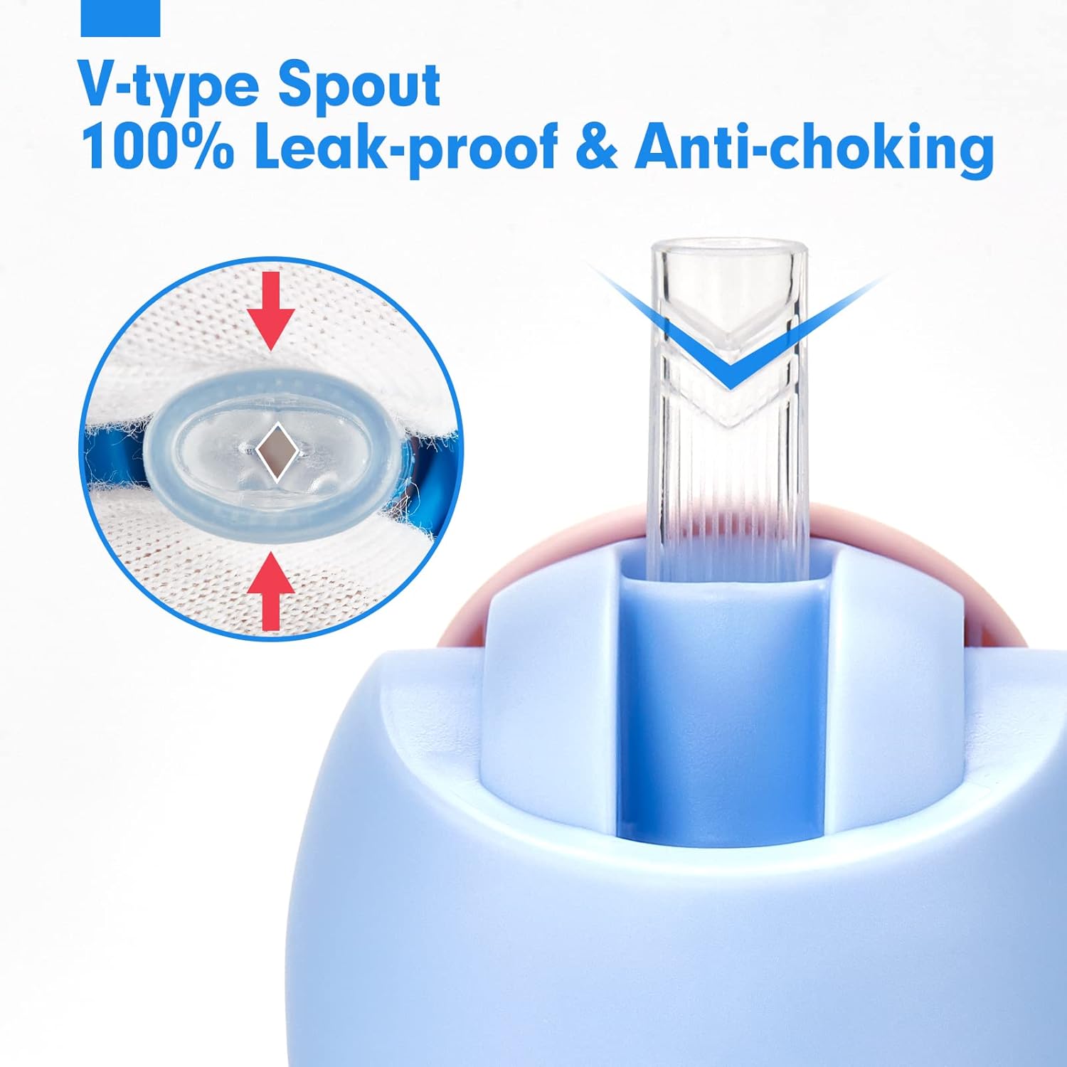 - Leak-proof and Anti-choking: Compared to traditional drinking cups, our sippy cup is designed with V-type, valve cover and water seal ring, will form a sealed state and shut off the flow if the cup is dropped, effectively prevent leaks and avoiding mess, parents don’t need to worry for their kids choking. The spout also features a built-in air vent to help ensure your baby swallows liquid, not air. The cup includes a cap to help keep the spout clean when you’re on the go