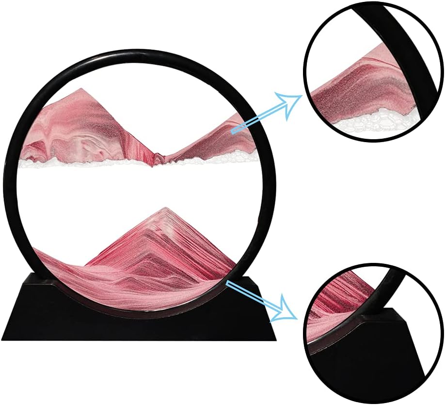 Aoderun Moving Sand Art Picture Round Glass 3D Deep Sea Sandscape in Motion Display Flowing Sand Frame Relaxing Desktop Home Office Work Decor (7", Pink)
