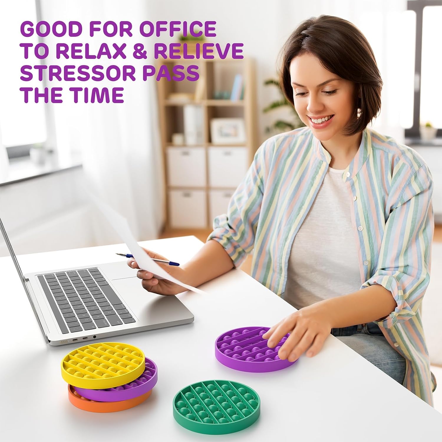 - 【Stress & Anxiety Reducing Toy】Whether it is accumulated stress or anxiety due to work, study or other causes,our push pop bubble fidget sensory toy will help you get relief.it creates a satisfying popping sound that soothes your ears,and the soft silicone texture of each pop has a pampering effect on your fingertips, helping to relax your mind and body,eliminate stress and anxiety! when all the bubbles on the front are squeezed, then flip it over and start again. Give you endlessly fun.