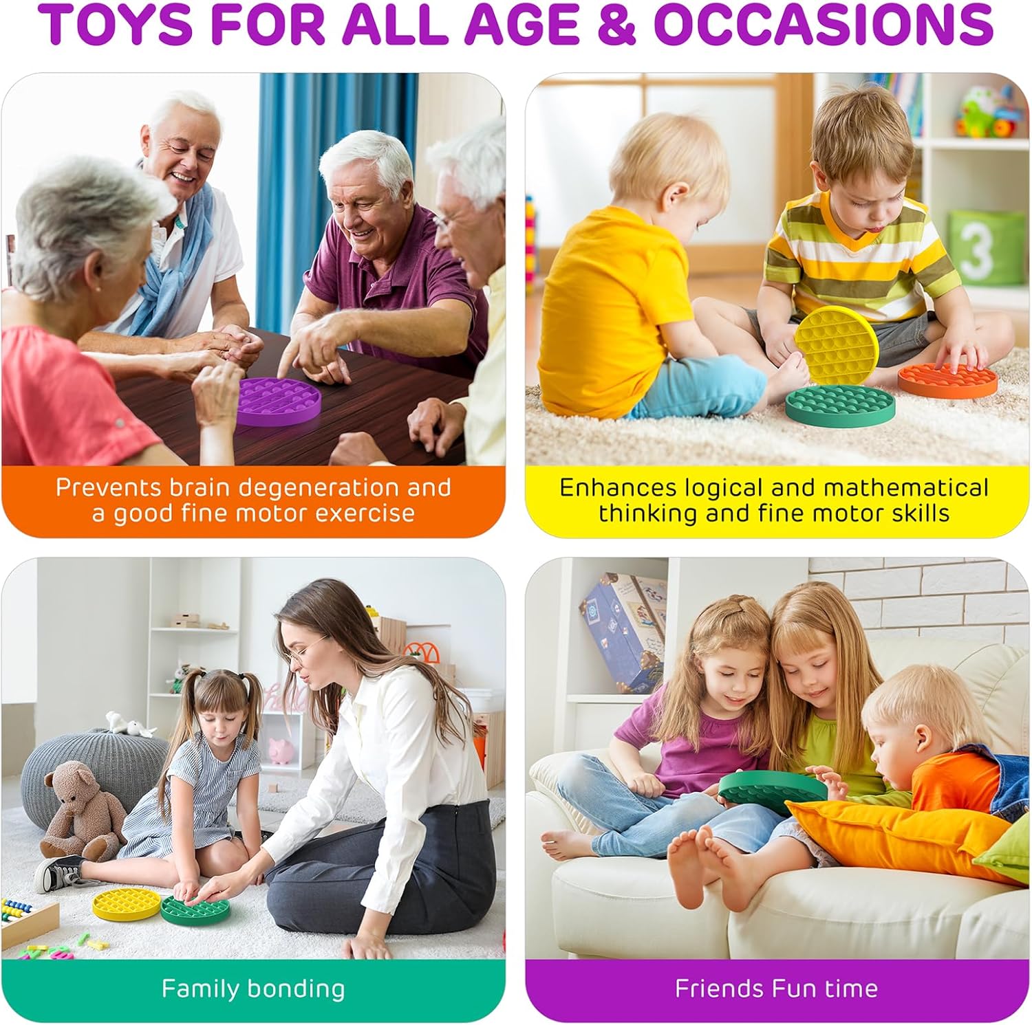 - 【Games for All Ages 】These stress-relieving pop pack toys are great for everyone. For kids, Fidget toys Pop bulk fidgets gifts are perfect for friends to spend a happy stress-relieving time together. For adults, relieve stress and keep the brain active, prevent the degeneration. It's a good helper to relieve anxiety. By squeezing our silicone bubble, you can get mental comfort and emotional release.