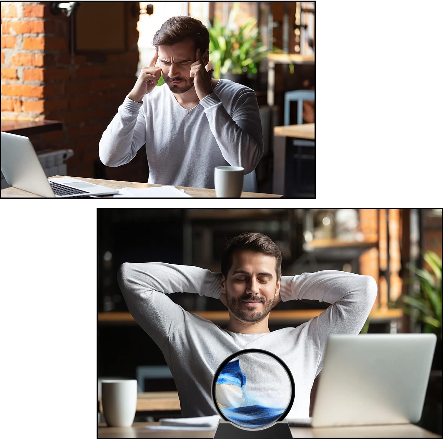 Liquid Motion Sandscape Round Moving Sand Art Sensory Toy Anxiety Fidget ADHD Relaxation Toy Home Office Desktop Decoration (Blue, 7-in)