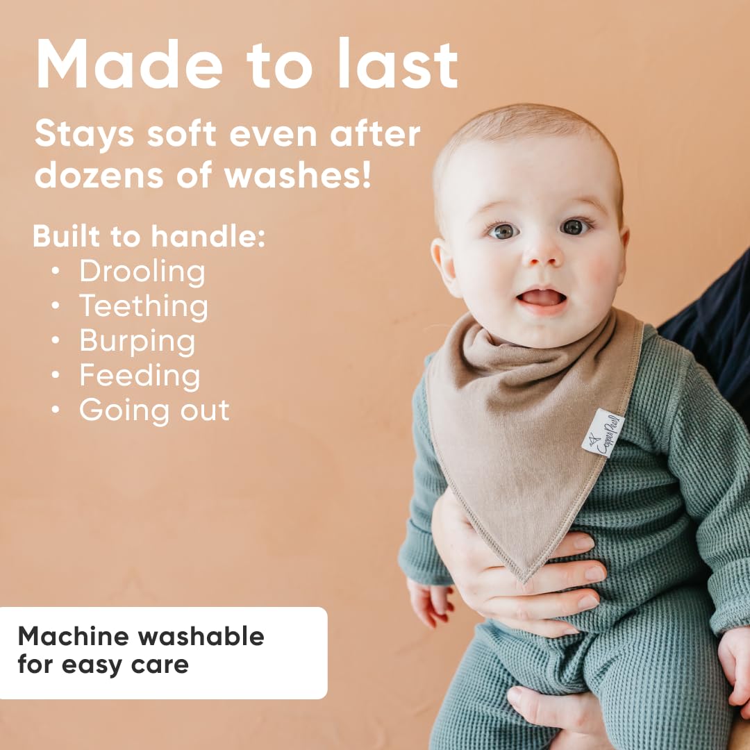 Copper Pearl 4 Pack Soft Cotton Baby Bibs for Drooling and Teething, Absorbent Drool Bibs for Baby Girl and Boy, Adjustable to Fit Newborns to Toddlers, Tons of Styles (Dune)
