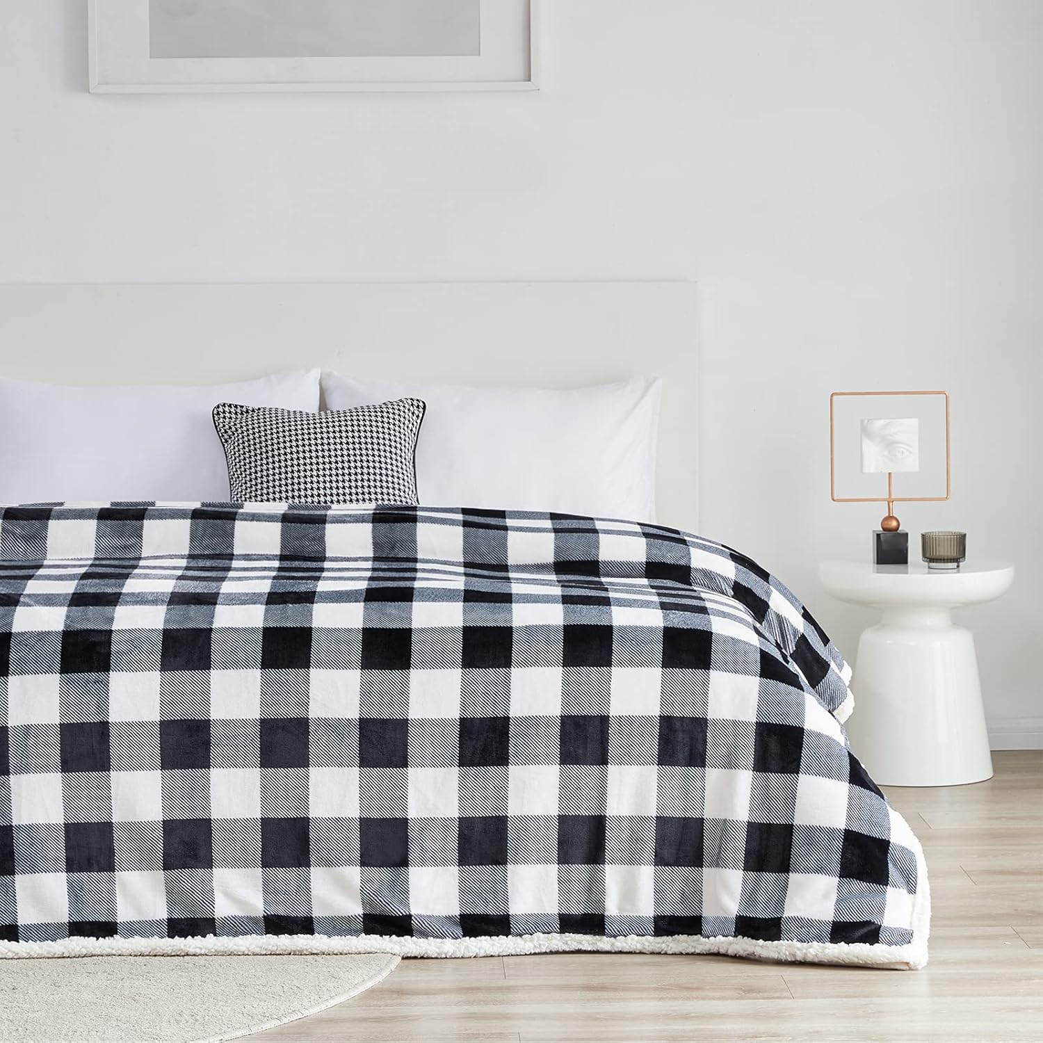 Touchat Sherpa Plaid Twin Blanket 60" X 70", Fuzzy Fluffy Soft Cozy Throw Blanket, Twin Size Plush Fleece Flannel Plush Microfiber Blanket for Couch Bed Sofa (Black)