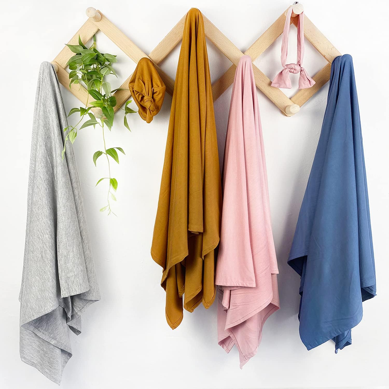 - STYLISH SET:Owlowla newborn swaddle set includes 1 45"x45"swaddle blanket,1 beanie hat or 1 knotted headband and 1 birth announcement card,the blush swaddle blanket set is matching with 1 knotted headband,many of colors are suitable not only for girls but also for boys