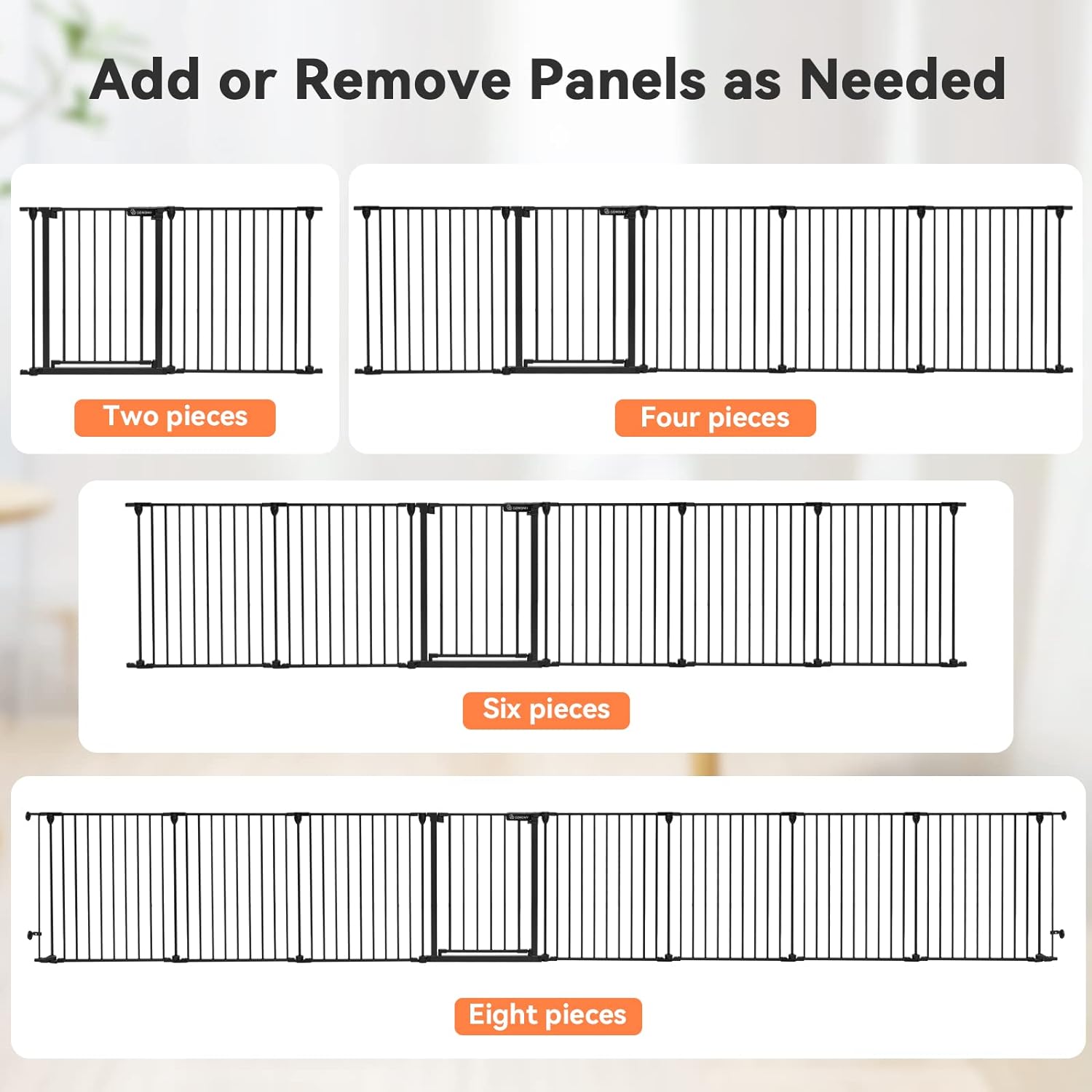 COMOMY 198" Baby Gate Extra Wide, Dog Gate Pet Gate for House Stairs Doorways Fireplace, 3 in 1 Play Yard Child Safety Gate, Auto Close, Hardware Mounted (30" Tall, Black)