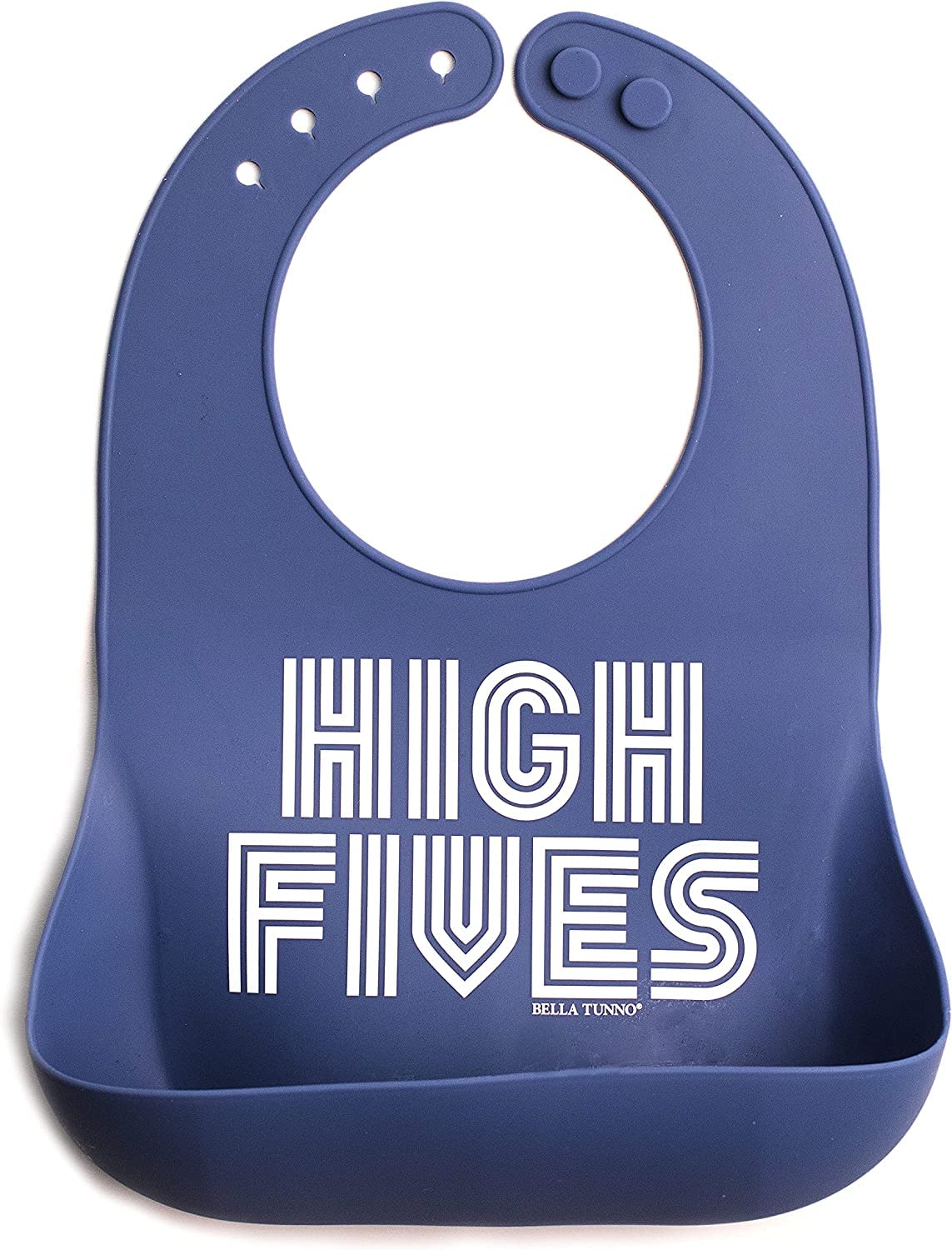 Bella Tunno Baby Bib for Eating, Waterproof Silicone Bib with Large Food Catcher, Adjustable Fit for Babies 4-12 months & Toddlers 1-3 Years, Boys & Girls, High Fives