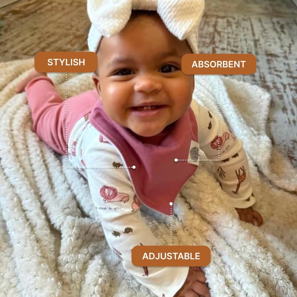 - SUPER SOFT, ABSORBENT & MESS-READY – Made with 100% cotton on the front and soft, absorbent polyester backing, these bibs catch drool, spit-up, and food messes, keeping baby dry, comfortable, and stylish all day long.