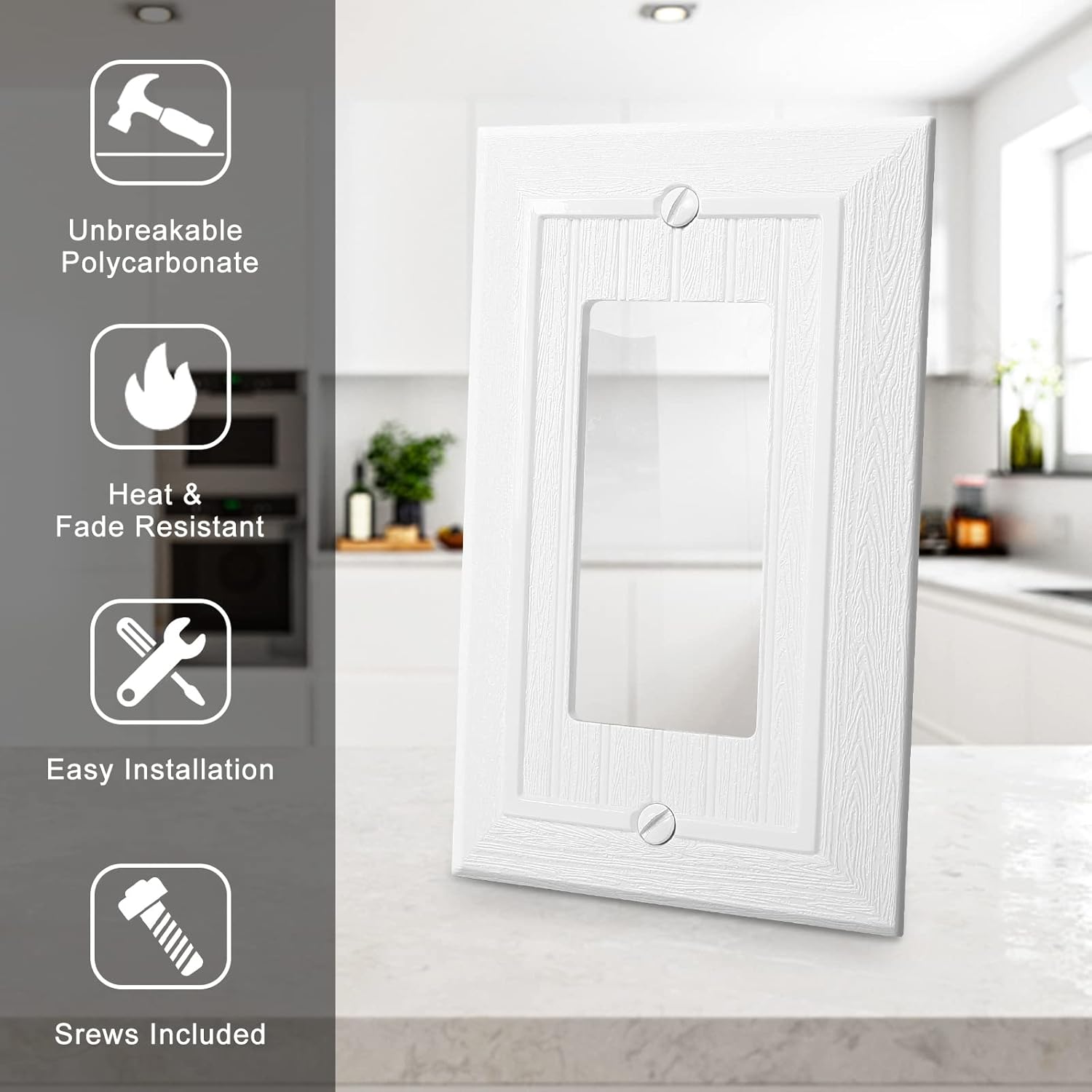 - ✔Package includes 10 Pack White 1-Gang Rocker Wall Plates with matching screws; Size 4.88" x 3.15". Add a decorative accent to your living space!