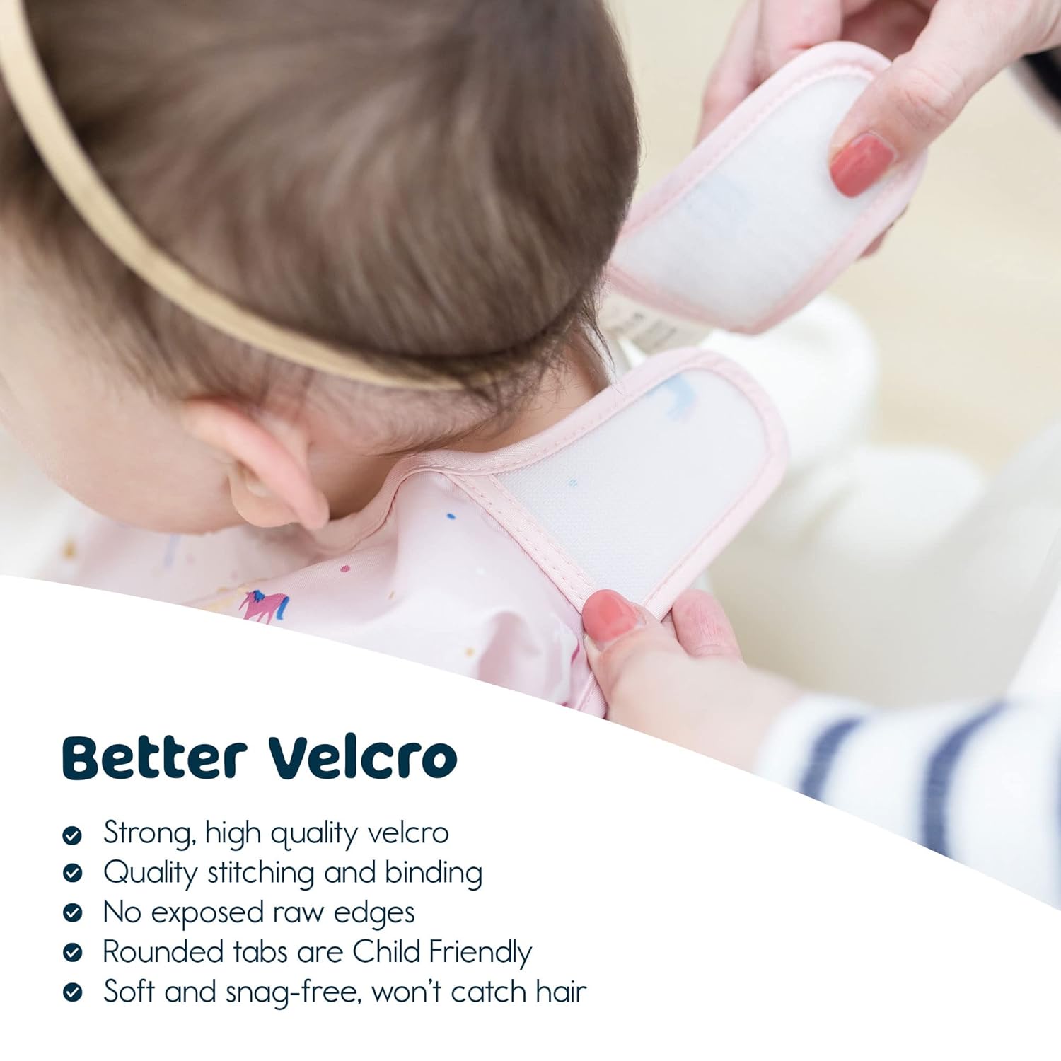 - EASY TO USE: Designed for baby-led weaning chaos, our waterproof baby bibs (6-24 months) feature a no-scratch closure that stays put during tugging but is also easy to remove. The 100% recycled polyester fabric wipes clean in seconds. New parents obsessed with baby feeding essentials love how these toddler-proof baby bibs transform messy high chair meals into stress-free bonding time. Perfect for baby bibs or toddler bibs.