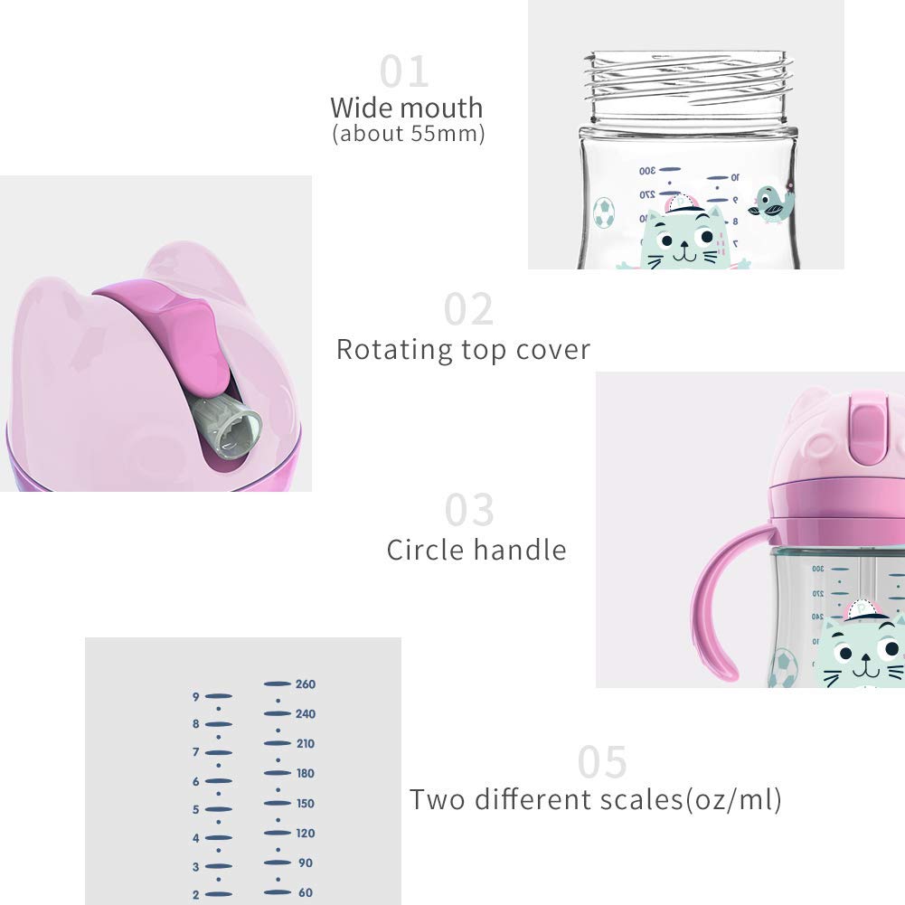 - ROTATING HANDLE: Handle is designed to rotate to protect the child's wrist and can help baby control drinking. 360 Degree Drinkable Straw Group-Weighted straw moving with liquid allows your baby drink from any angle.