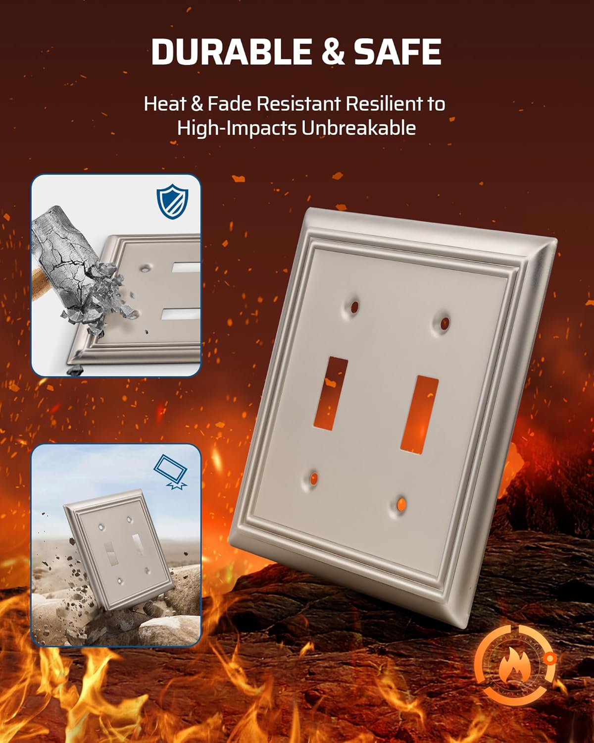 - 【Elegant&Simple Design】Brushed nickel finish fits with texture on the edge, giving your home a nice modern look; making the receptacles or light switches more decorative