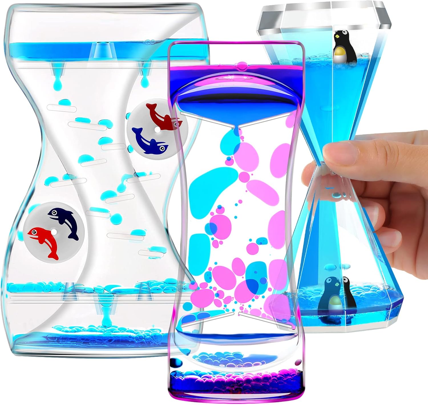 - 1.Fashion and Charming: Lovely Penguin Liquid motion bubbler timer using sealing acrylic material, oil drop and appropriate amount of bubbles to create the perfect picture, give you unexpected surprise and the liquid won't leak easily. Liquid Timer Never runs out of energy. Just flip over and start again. Liquid timers makes people curious.