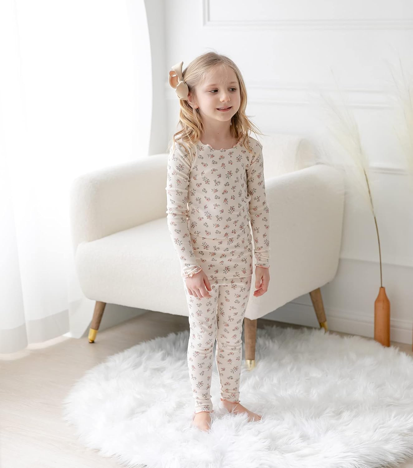 AVAUMA Baby Boy Girl Pajama Set 6M-7T Kids Cute Toddler Snug fit Flower Pattern Design Pjs Cotton Sleepwear Ruffled Shirring