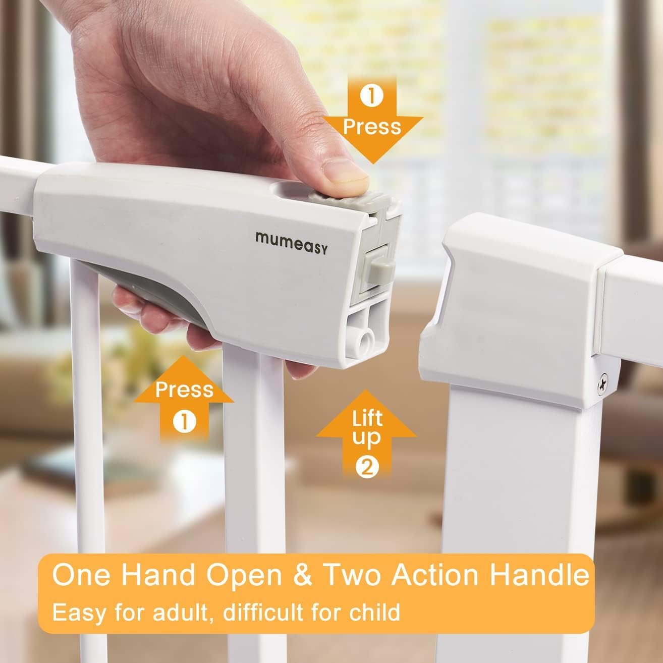 - One-handed Unlocking: Allows you to easily unlock the gate when you are busy. With an ergonomic double lock design, Only need one hand to open the Walking through gate whether you are holding a child or items