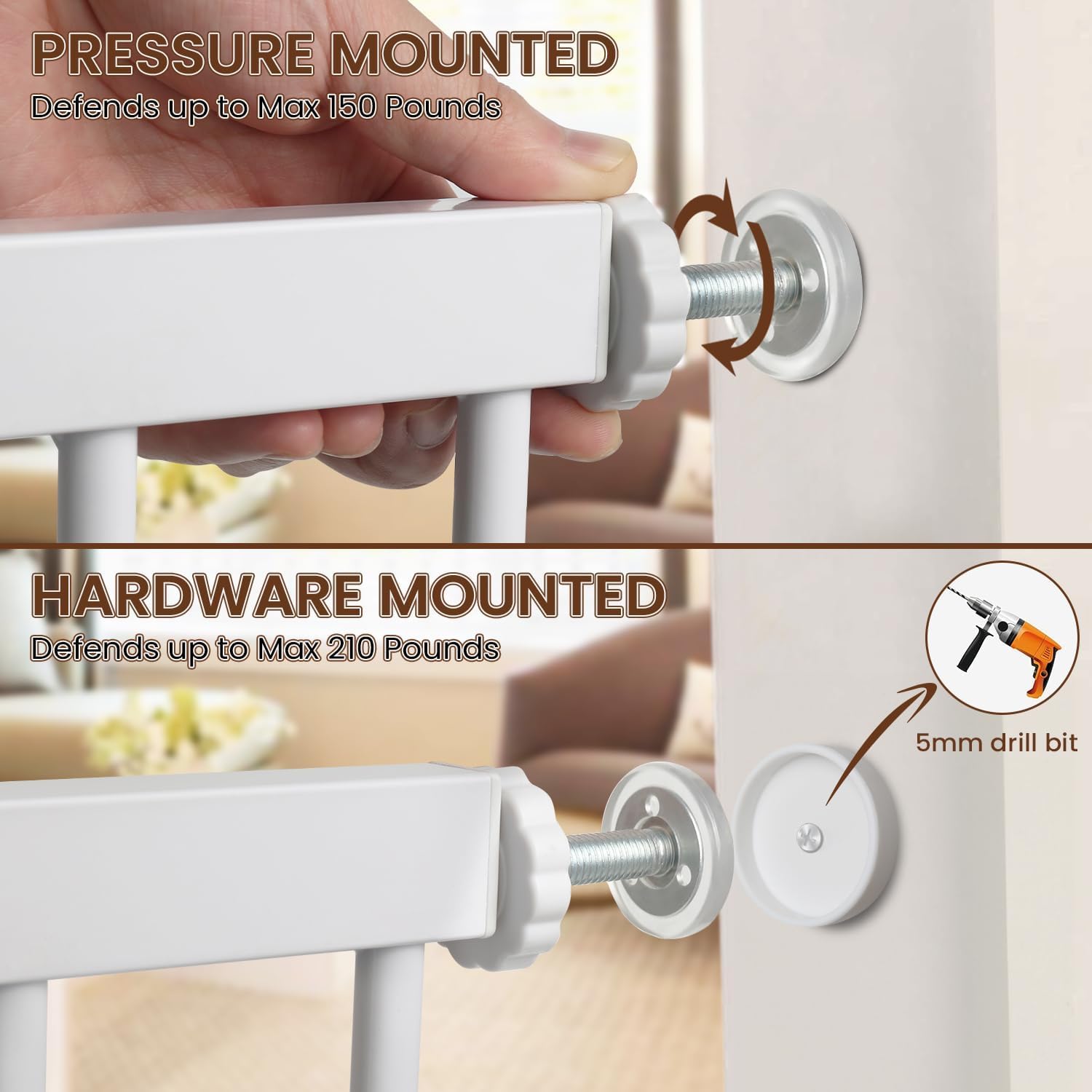 - 40 Safety Tests: Passed the test of INTERTEK. Our baby gates are made of steel and other durable metals, which can withstand the impact of 500-1000N, which is equivalent to 8 children pushing the door hard