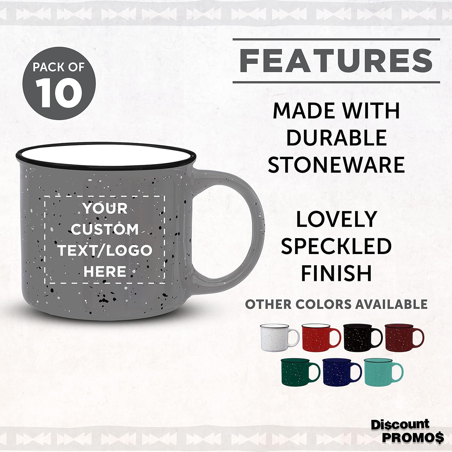 DISCOUNT PROMOS Custom Ceramic Campfire Coffee Mugs 13 oz. Set of 10, Personalized Bulk Pack - Perfect for Tea, Espresso, Cappuccino, Hot Cocoa - Grey