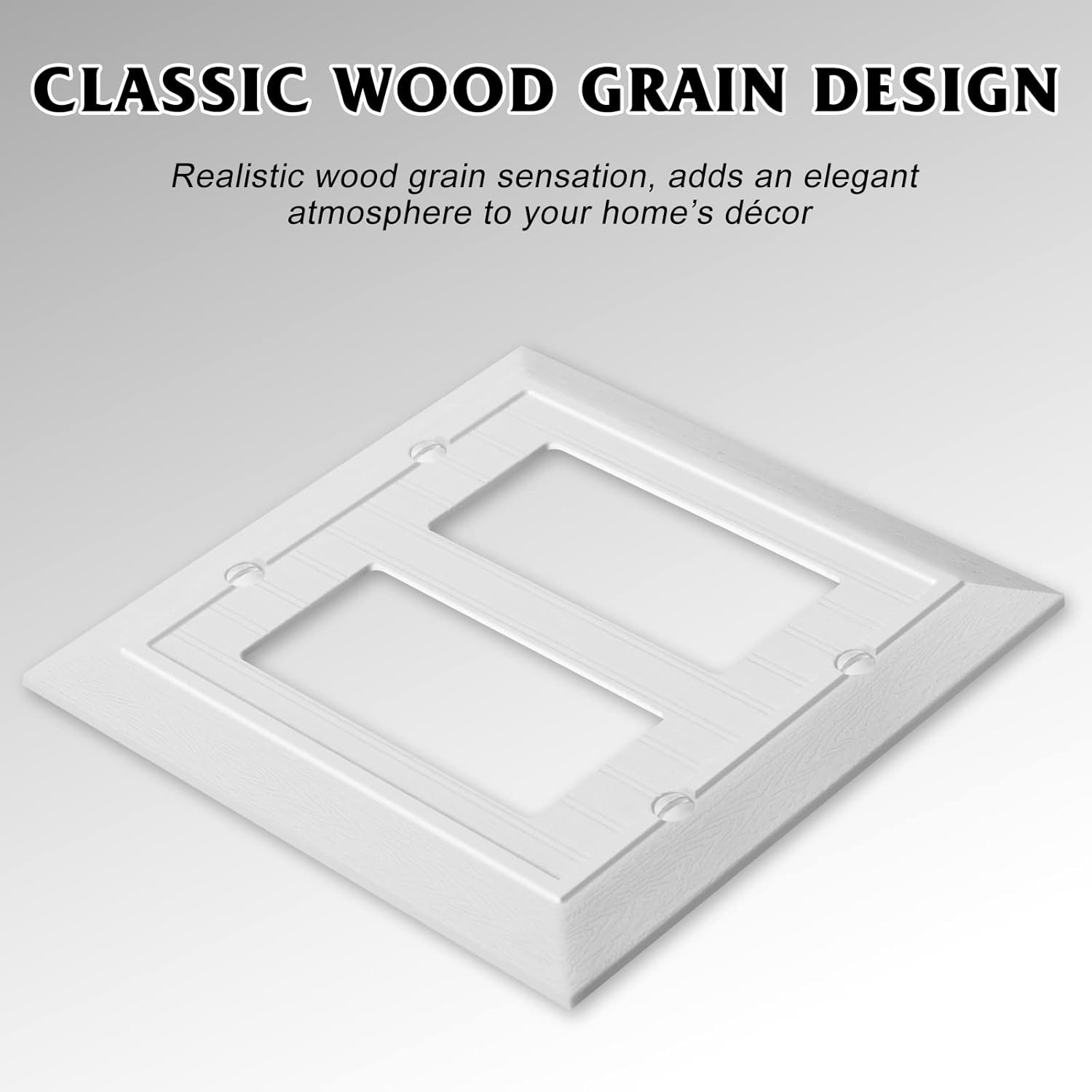 Modern Decorative Wall Plate Switch Plate Outlet Cover, Vintage Retro Wood Grain Design (Double Decorator-10 Pack, White)