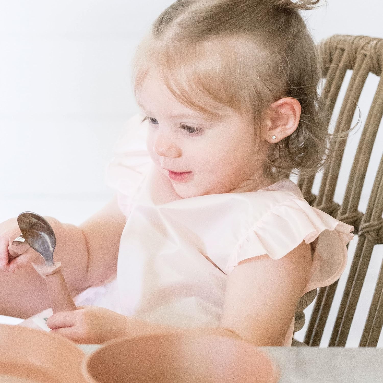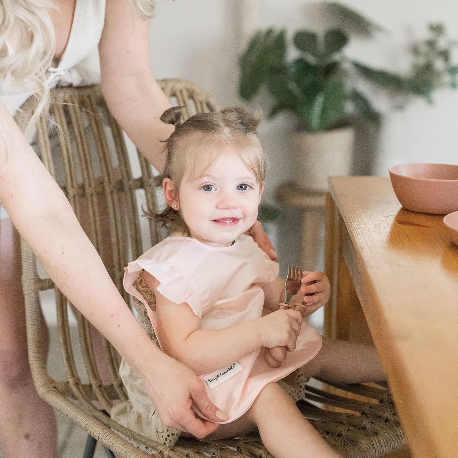 Tiny Twinkle Mess Proof Baby Bib - Waterproof & Lightweight Baby-Led Weaning Apron | 100% Recycled Polyester, Easy Clean & Machine Washable (Rose, Small 6-24 Months)