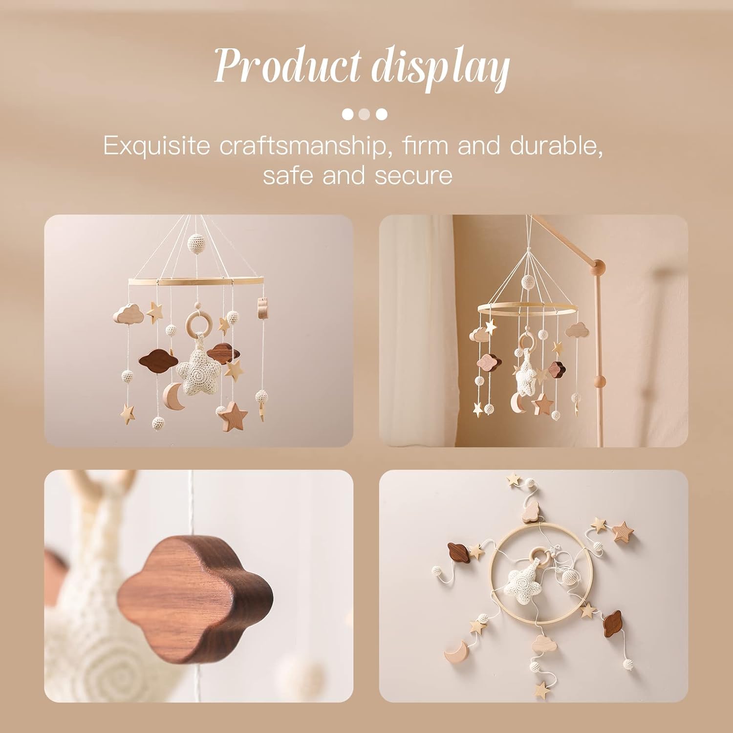 - ✨ PROMOTES HEARING AND VISUAL DEVELOPMENT - Simply Hang the nursery mobile on a baby mobile holder (not included). The natural soothing color provides enough interest & imagination for infants newborns but does not overstimulate. Our baby crib mobile contains bells that will make a pleasant sound when it trembles slightly or when the wind blows. It helps the baby calm down slowly and fall asleep slowly.