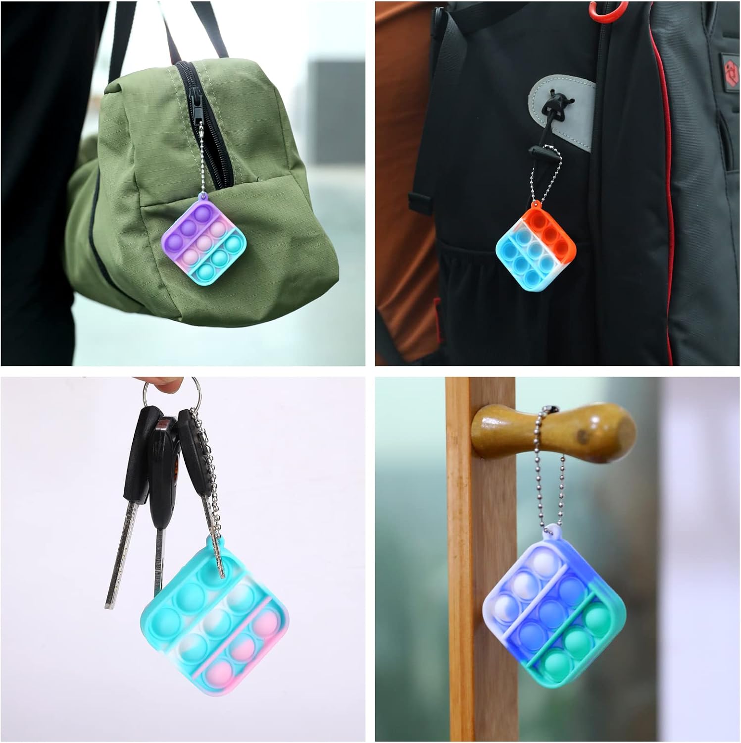 - š¹ Widely Used: The Mini Pop keychain toys are lightweight, durable,waterproof. You can use it as a key-chain and carry it with you all the time. Not only suitable for children, but also for adults. When press the bubbles, the mini pop toy will make a slight popping sound, when all the bubbles on the front are squeezed, then flip it over and start again. Give you endlessly fun.