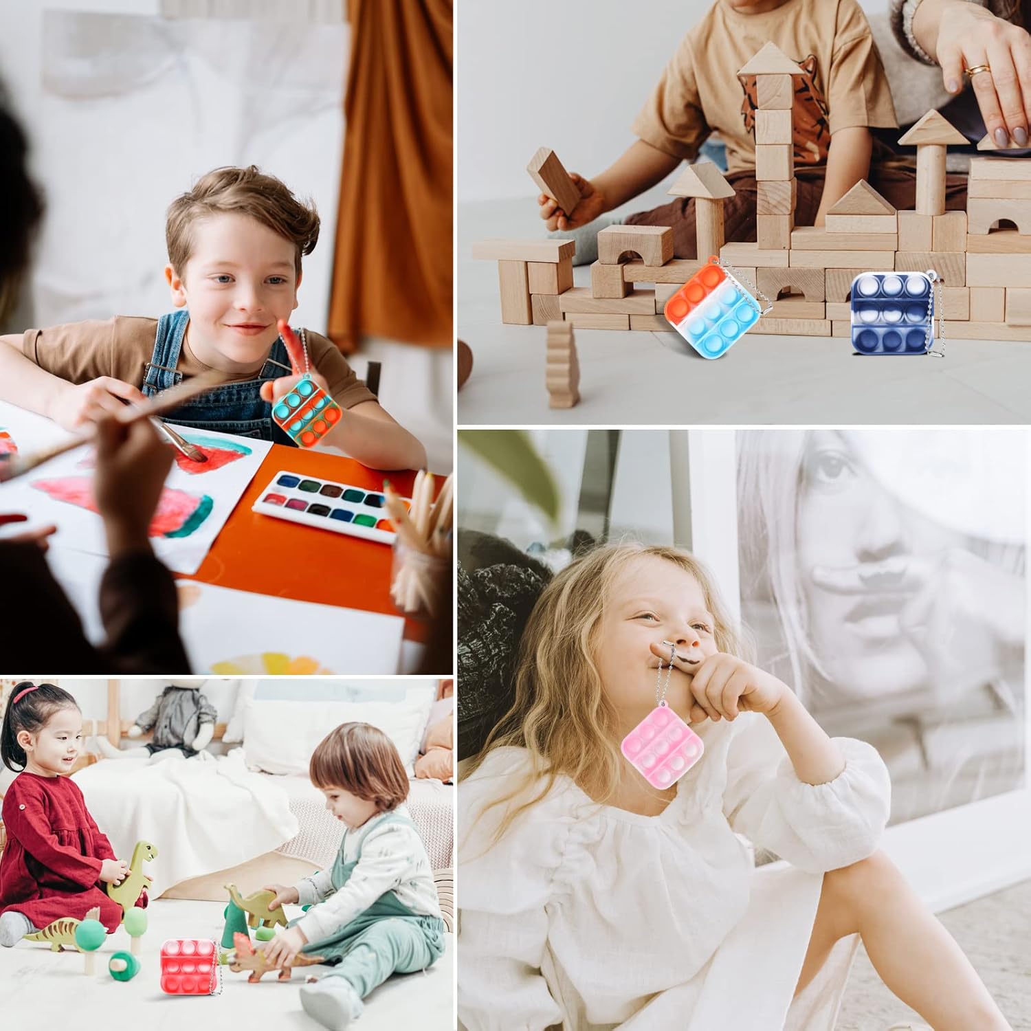 - š¹ Entertainment and Joy: These mini pop keychain are great for everyone.Fidget toys are durable and comfortable to the touch, and kids will love them and keep popping them. It can be reused and cleaned. It's waterproof so you can play anywhere, bathroom, pool, seaside.