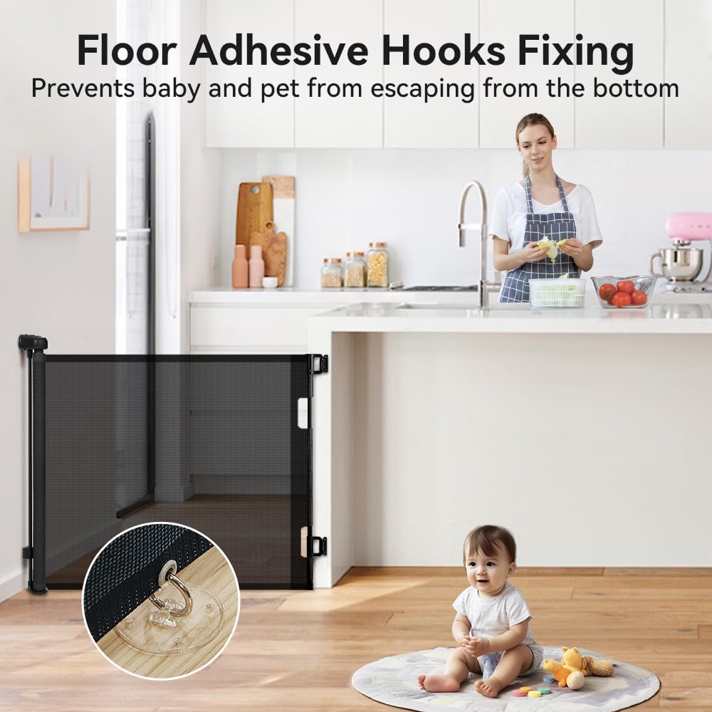 - Noiseless retractable design - The technical upgrade reduces the friction of the gate while also reducing the sound of retracting the mesh. We are committed to creating a safe, closed, and quiet environment for your baby and pets.