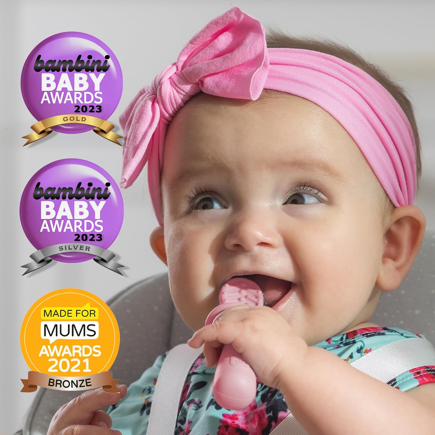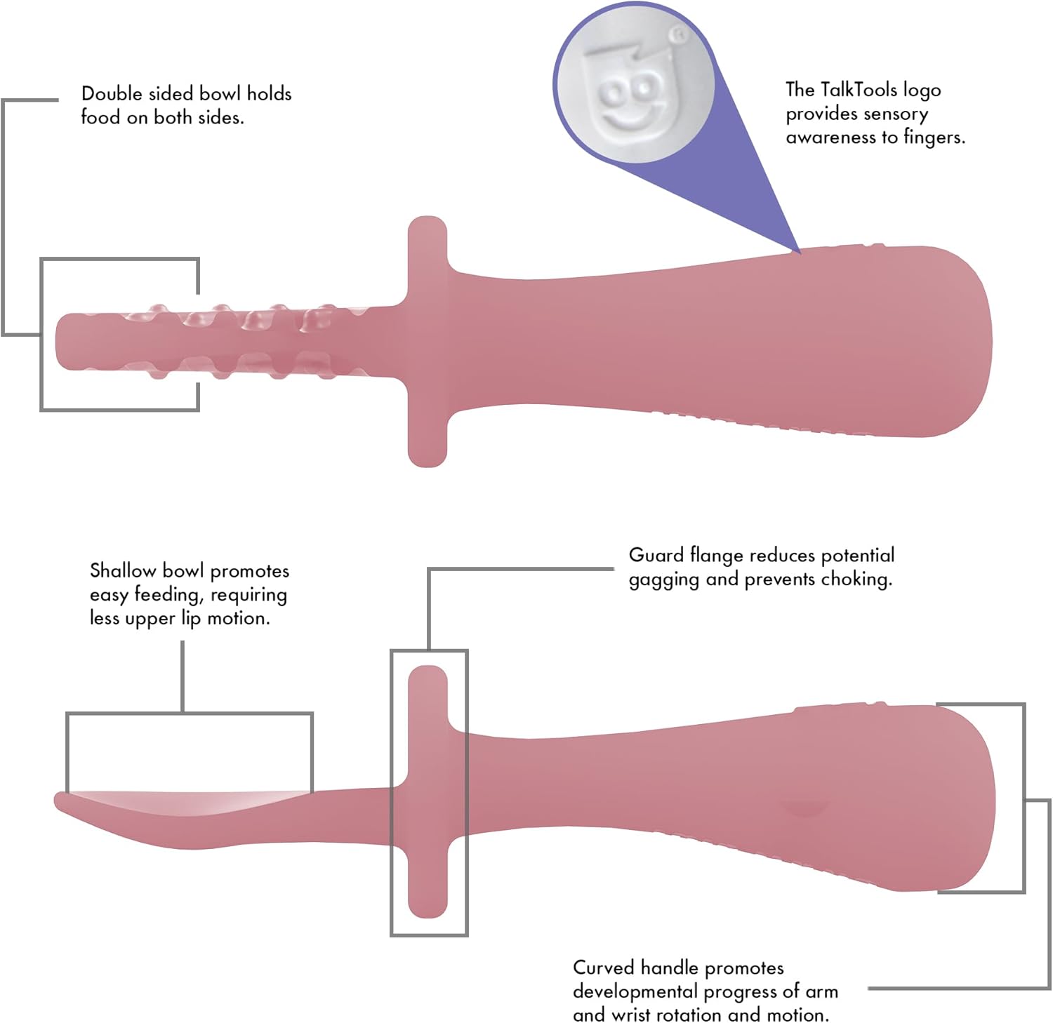TalkTools ITSY Tiny Silicone Spoons – Twin Pack Soft Silicone Self-Feeding Training Spoons for Kids & Toddlers, Anti-Choking Flange Guard and Non-Slip Handle (Bubblegum)