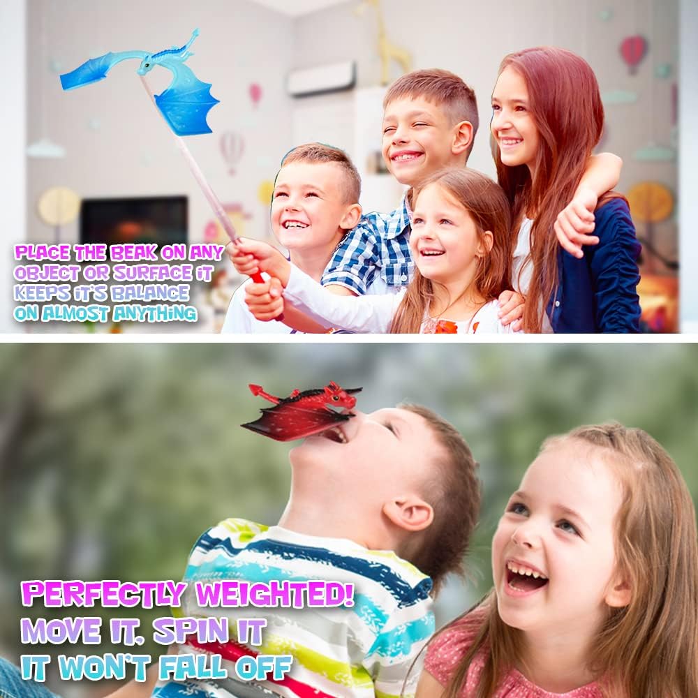 - DEFY GRAVITY: Challenge physics with some dragon magic! This pack comes with a SET OF 2 balancing dragon toys, each with a display stand. They seemingly balance on everything! Whether it’s the stand, the tip of your finger, or the end of a pencil.