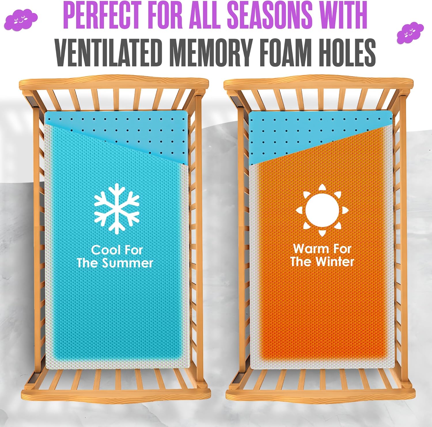 - DUAL SIDED: Our crib mattress uses a dual sided memory foam to ensure comfort as well as firmness for your child. For babies, you want to use the firm side. As your child grow, flip over your Sleepah crib mattress for a bit softer side. Our memory form is Certipur certified and fully breathable. The crib mattress uses a cool gel memory foam to help airflow for comfortable sleep.