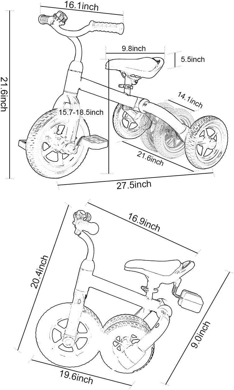 - 😊Recommended Age: Suitable for 2-5 years old kids. Pedal or pedalless Tricycle-Mode for 24-32 months toddler, Balance-Bike-Mode for 2-4 years old children. Seat height is adjustable from 15.7 to 18.5 inch. Meet different needs during your kids' growth. Max. load capacity up to 55 lbs.