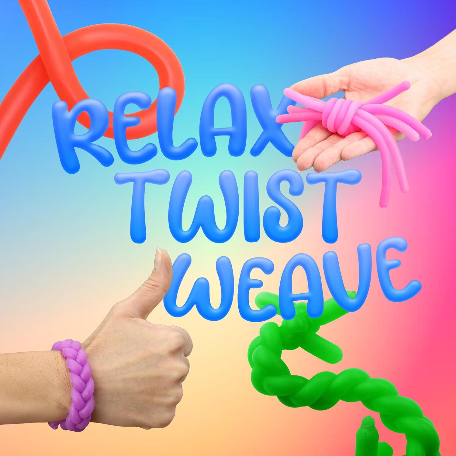 - Super Stretchy - These stretchy string fidget toys are 8.25" long and 0.3" thick, but are able to stretch almost 5 feet. Your child will have fun with this sensory fidget toy. It can be stretched, rotated and tied. A squiggly noodles are everyone's favorite