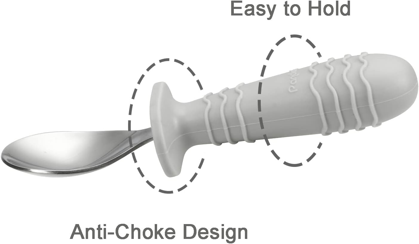 PandaEar 4 Set Baby Toddler Silicone Stainless Steel Utensils Silverware Spoon Fork for Baby Toddler BPA Free with Silicone Holding Anti-Choke Design (Pink&Grey)