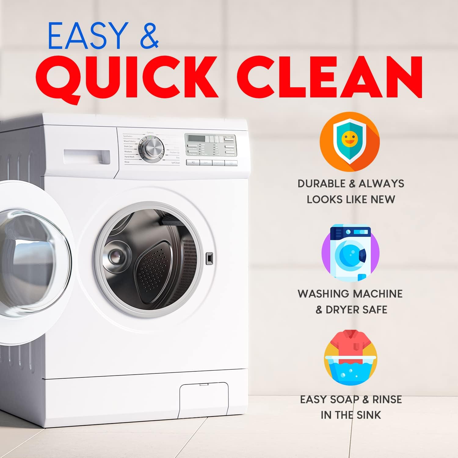 - EASILY CLEANS IN YOUR WASHER AND DRYER - Quickly wipes and washes. Safe for your washer and dryer. Or simply rinse in the sink with soapy water. Long lasting bibs always look like new. Baby bibs air-dry in about 30 minutes. But it's best to put them in the dryer on low or medium for 5 to 15 minutes. Tip: Make sure bibs dry completely to prevent black dots from appearing.