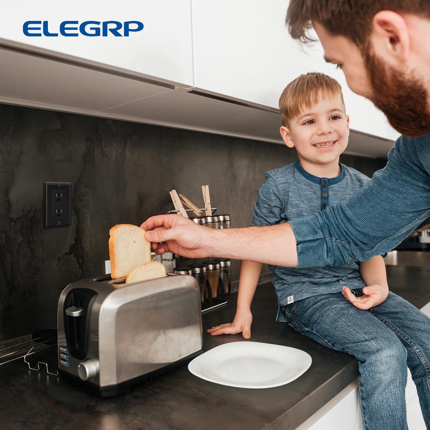 ELEGRP Decorative Receptacle Wall Plate, 1-Gang Mid Size Outlet Decorator Cover, Unbreakable Polycarbonate Dual Port Faceplates Covers, UL Listed, Screws included (5 Pack, Glossy Black)