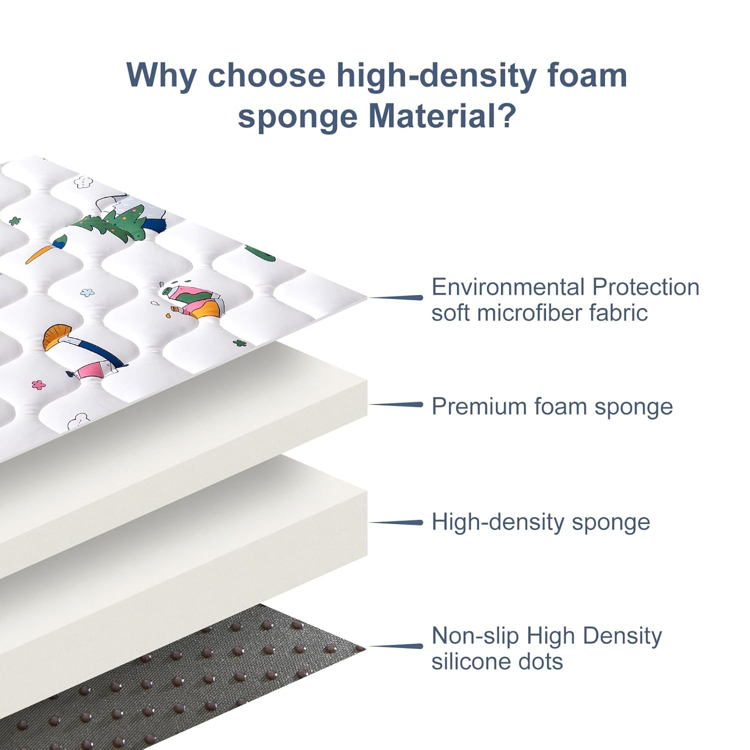 - Easy to clean: No worries at all about mats stained with urine, milk, juice and other stains, our mats are machine washable and can be washed in a large washing machine and dried at low temperatures, which is very convenient, especially for busy parents.