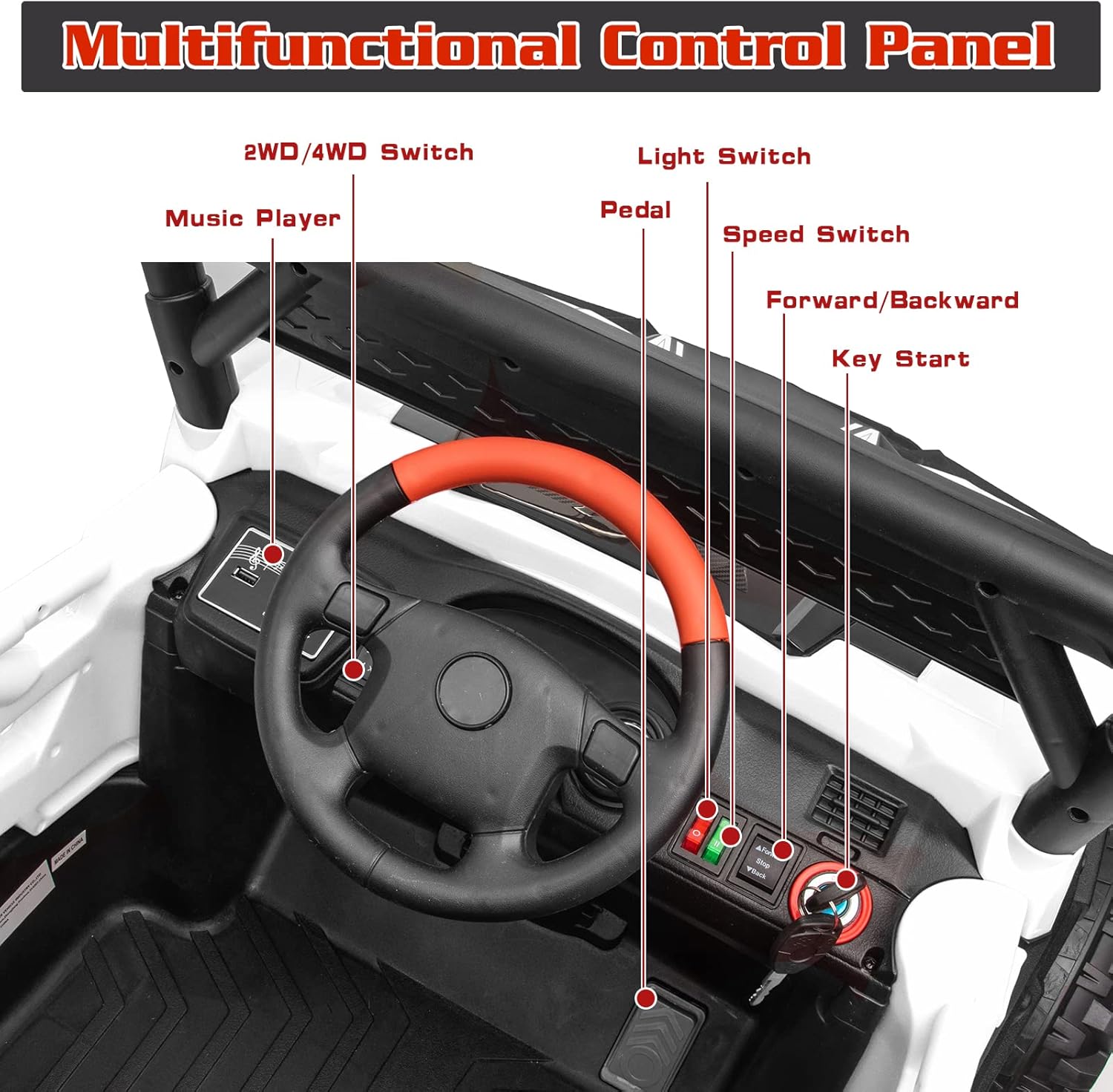 - DIRVE WITH FUN- Our kids electric car provides your children with extra fun through its built-in music, AUX input, USB port, and the Bluetooth function allows your kids to enjoy their favorite songs during driving, which will definitely add fun to the playtime