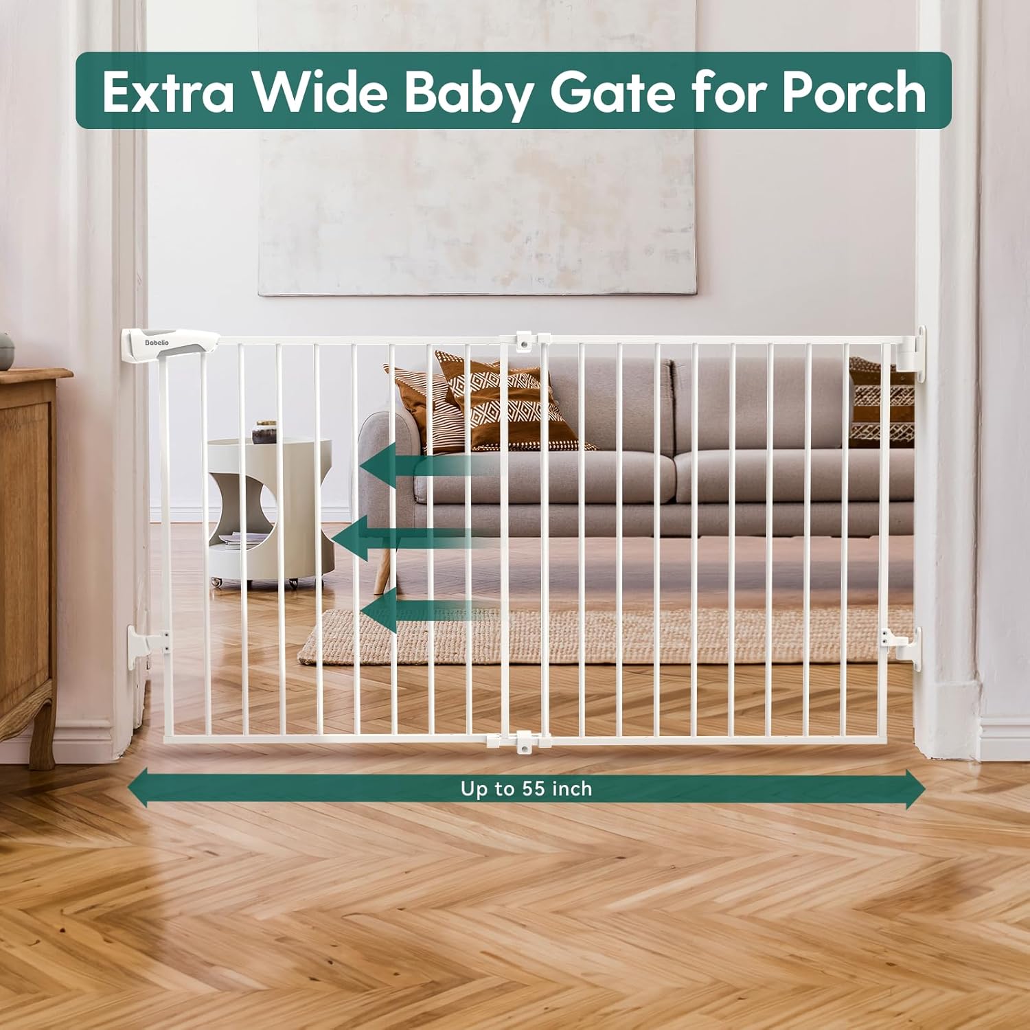- ACCOMODATES MOST OPENINGS: Babelio 31.5-55" metal extra wide baby gate is specifically designed for stairs and bannisters, and the width of the safety gate can be adjusted to fit top or bottom of stairs, doorways and hallways. And 28 inch tall make it perfect for toddlers and medium pet
