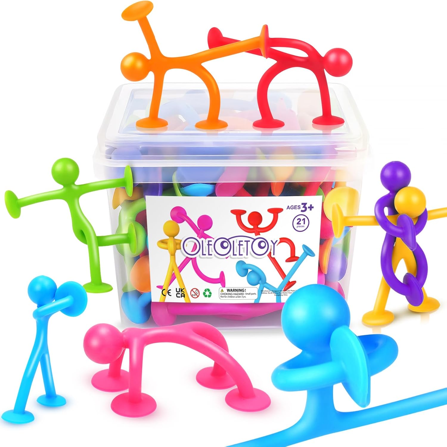 OleOletOy Suction Fidget Toys for Kids: 21 Pack Suction Cup People Toys - Fidget Toys Bulk Treasure Box Toys for Kids Autism Classroom Calm Down Corner - Prizes for School Party Favors