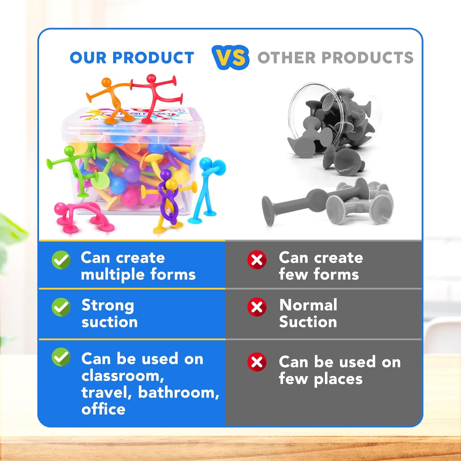 - Innovative Fidget Toys: Stretch! Connect! Build! Fidget toys can take on various poses on smooth surfaces such as windows, desks, and glass, which can inspire endless creativity; Suction cup fidget toys are suitable for people of all ages; They can be used as children's classroom treasure box toys to develop fine motor skills and hand-eye coordination, and also function as adult office desk toys to relieve anxiety and stress