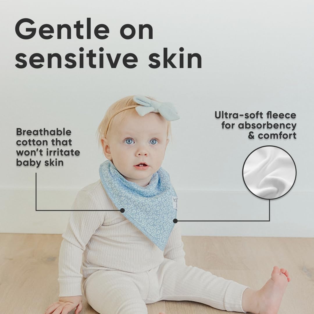 - MAXIMUM ABSORPTION: Fronted by ultra-soft Organic Cotton and lined with water-resistant polyester fleece to provide an extra layer of absorbency. Each bib is crafted with dual-layer protection against heavy drooling or spit-up, keeping your baby dry and comfortable.