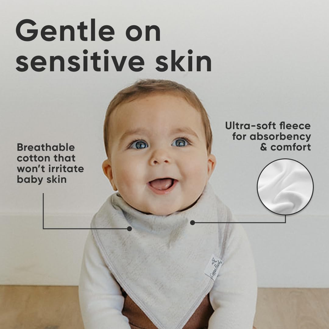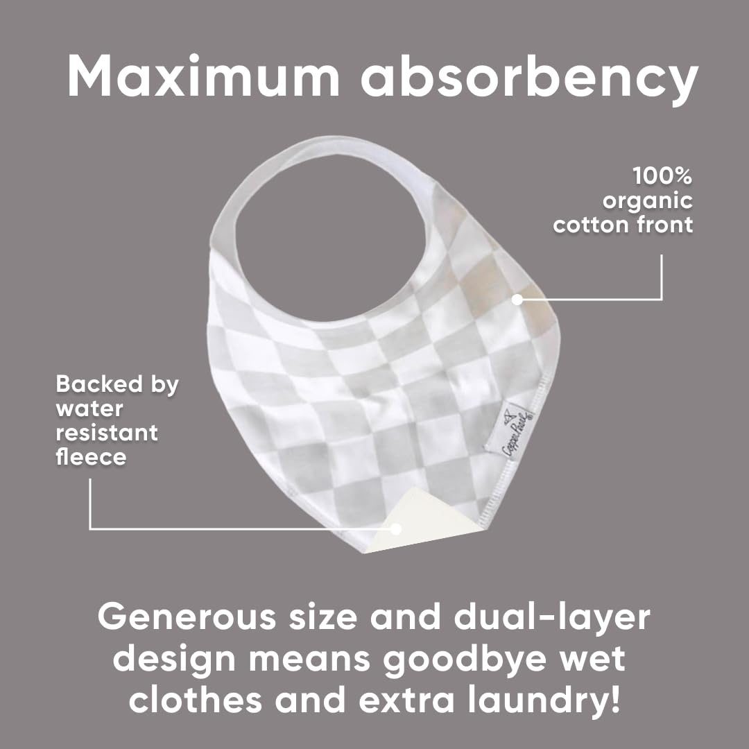 - MAXIMUM ABSORPTION: Fronted by ultra-soft Organic Cotton and lined with water-resistant polyester fleece to provide an extra layer of absorbency. Each bib is crafted with dual-layer protection against heavy drooling or spit-up, keeping your baby dry and comfortable.