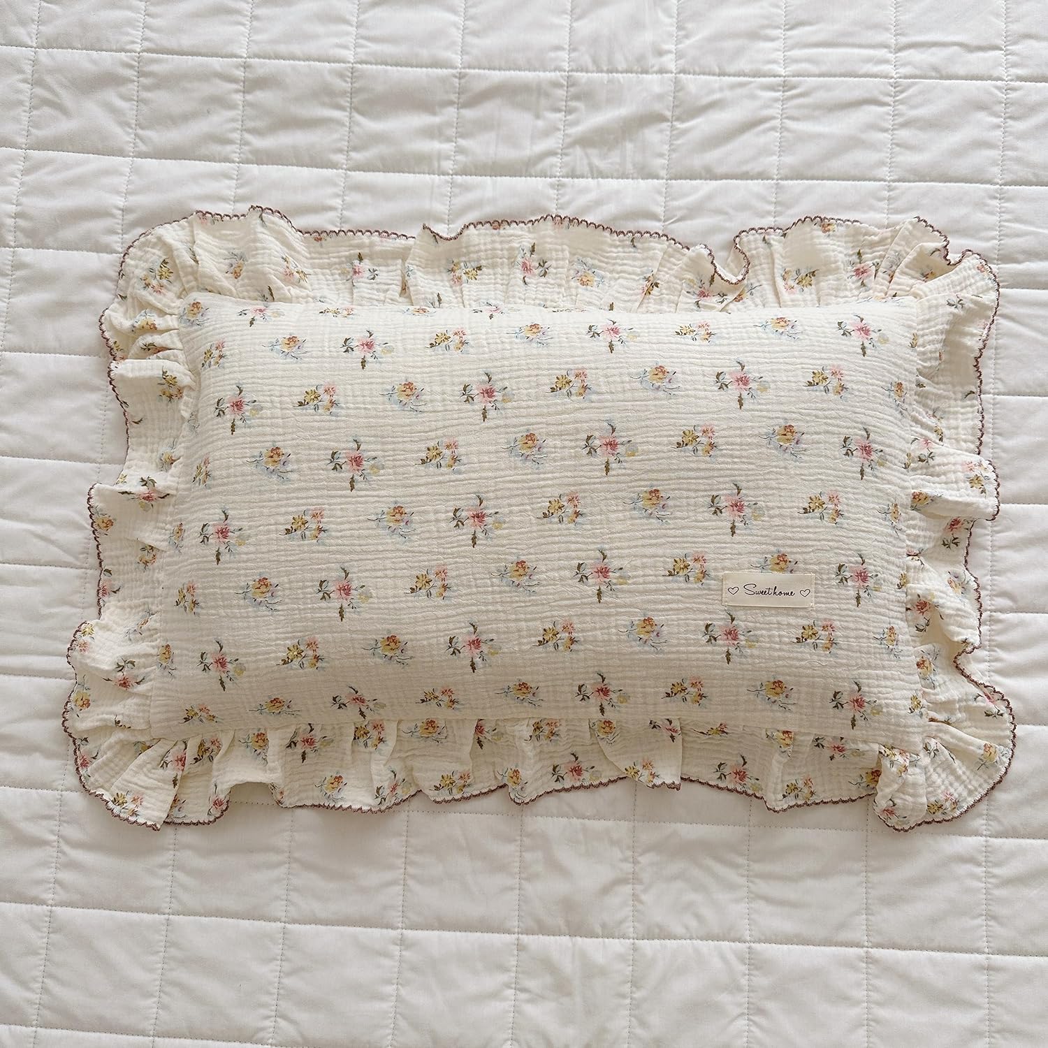 BuLuTu Cotton Muslin Kids Toddler Pillowcase with Cute Azalea Flowers Pattern Super Soft Crib Nursery Pillowcase for Boys,Girls,Bedding Decor Machine Washable, Durable Pillowcase,1 Piece,14"x20"